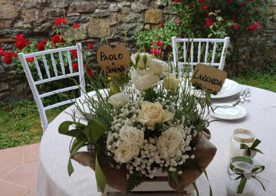 Il team di Prati e Fiori si occuperà delle decorazioni floreali del luogo della cerimonia, di quelle del ricevimento e dell’auto nuziale creando anche il bouquet della sposa ed la bottoniera dello sposo.